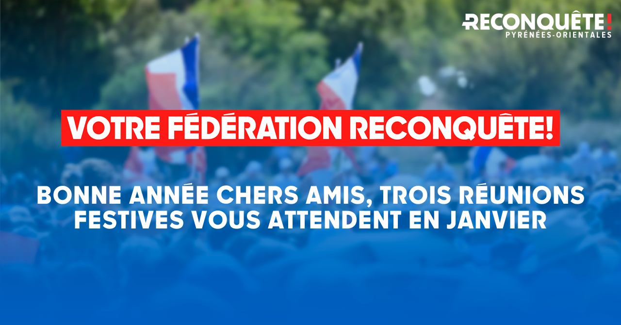 En ce début d'année 2024, cruciale pour notre mouvement et ses millions d'électeurs, avec les élections européennes du 9 juin pour lesquelles Marion, notre tête de liste, aura besoin de tous pour amener avec elle, au Parlement Européen, de nombreux députés incarnant vraiment la Droite civilisationnelle et souverainiste, nous vous convions à trois réunions, à la fois festives et sérieuses, puisque nous apprendrons à mieux nous connaître et à nous organiser pour être aussi efficaces que possible.